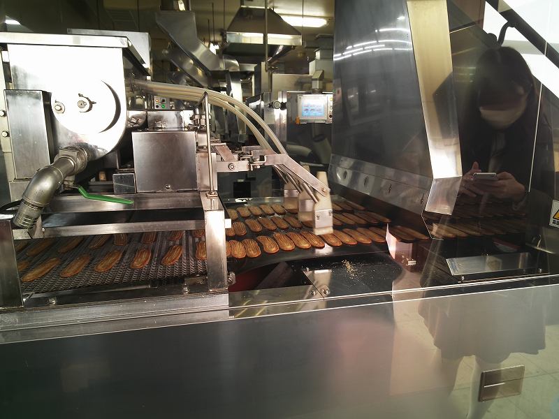 ファクトリー内では、うなぎパイの出来上がるまでの工程をガラス越しに見ることができ、機械の動きや職人の技を間近に体験できます。